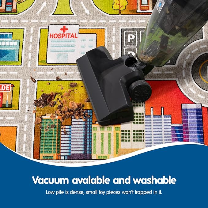 Booooom Jackson Kids Car Carpet Playmat Rug 3.3 x 6.6 ft,Car Mat for Kids Toy Cars,Road Rug,Buildings Parking Helipad Printed on,Kids Car Play Rug,Non-Slip Race Track Rug for Play Room Bedroom