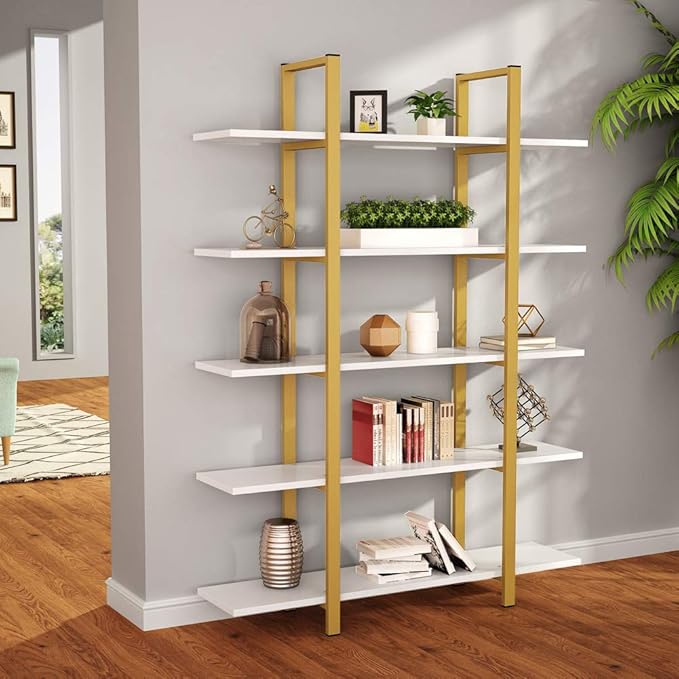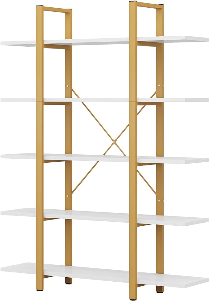 Tribesigns 5-Tier Bookshelf, Vintage Industrial Style Bookcase 70 ‘’ H x 12’’ W x 47’’L, Gold