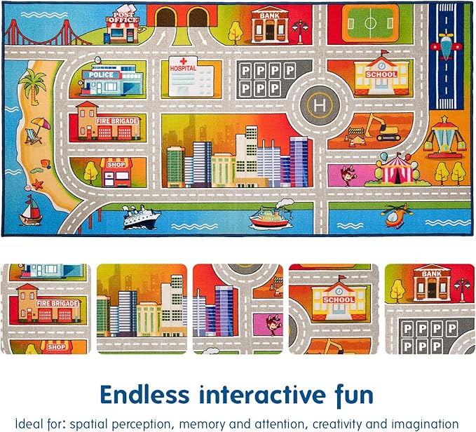 About This Polyester It’s a fun,busy, and exciting car rug. Car mat for kids toy cars provides a fun interactive...