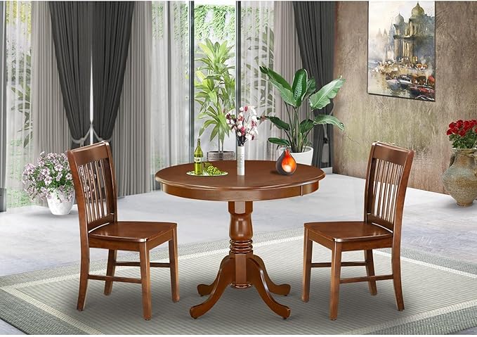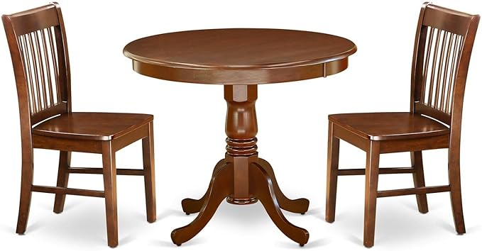 East West Furniture ANNO3-MAH-W 3 Piece Room Set Contains a Round Kitchen Table with Pedestal and 2 Dining Chairs, 36x36 Inch