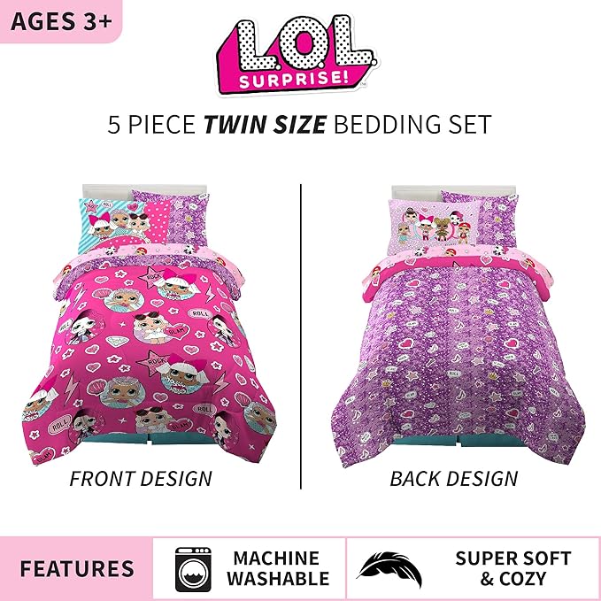About This 100% Microfiber LOL SURPRISE DESIGN: Give her bedroom a rock-and-roll makeover with colorful bedding featuring the adorable LOL...