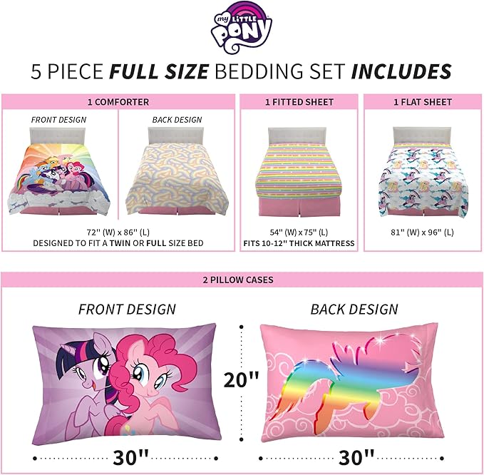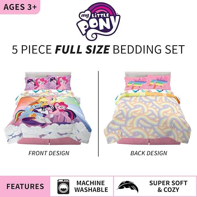 Franco Kids Bedding Super Soft Microfiber Comforter and Sheet Set, 5 Piece Full Size, My Little Pony