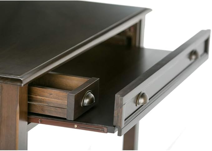 SIMPLIHOME Burlington SOLID WOOD 42 inch Wide Home Office Desk, Writing Table, Workstation, Study Table Furniture in Mahogany Brown with 1 Drawer