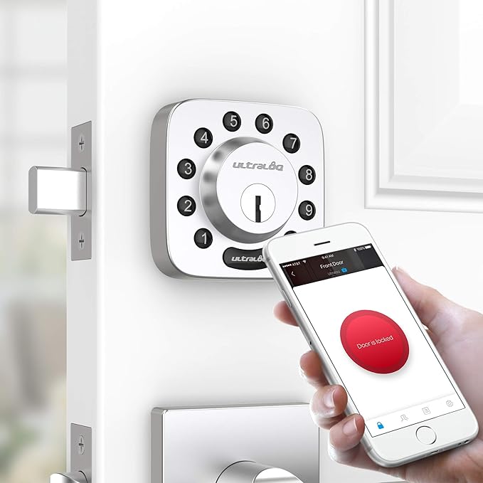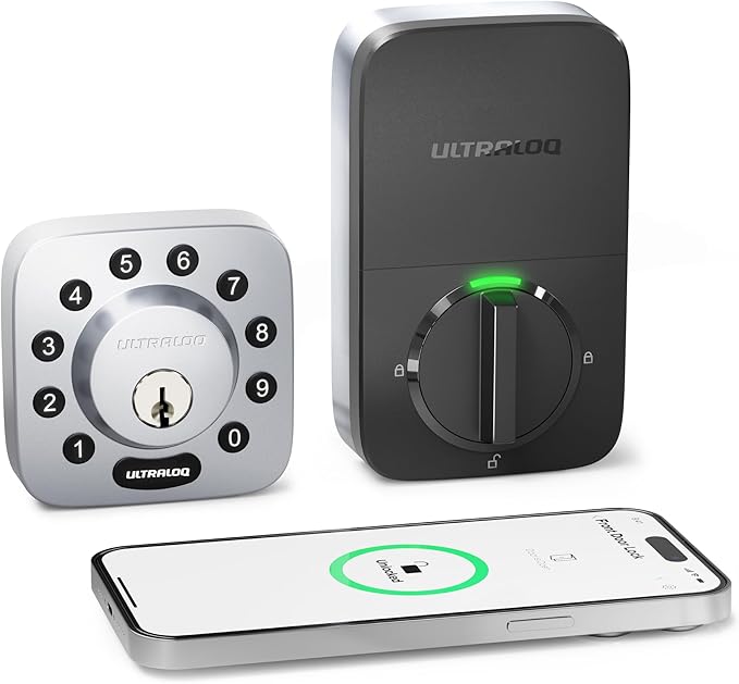 ULTRALOQ U-Bolt 5-in-1 Keyless Entry Backlit Keypad, App,Smart Door Lock, Bluetooth, Satin Nickel