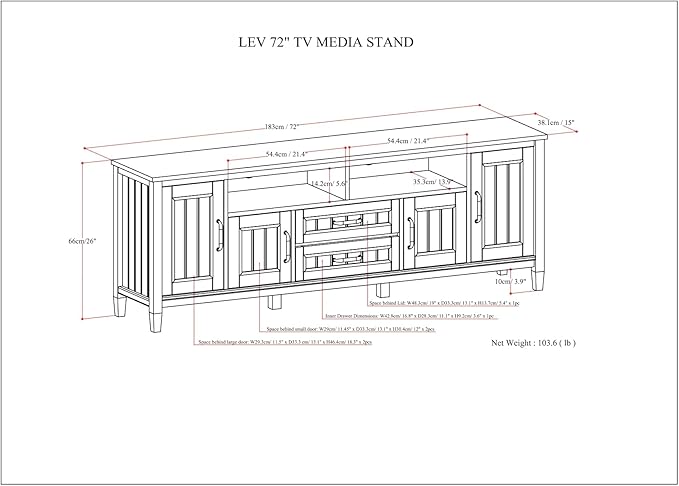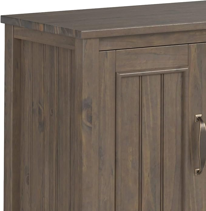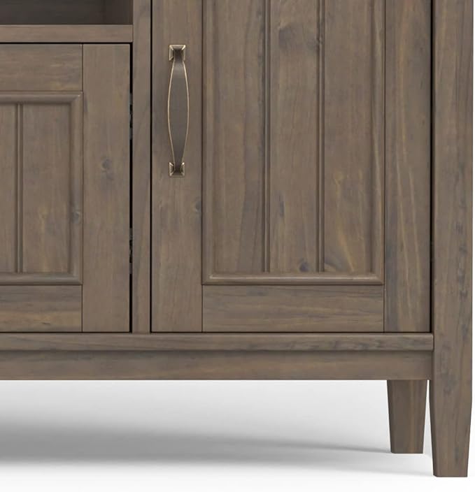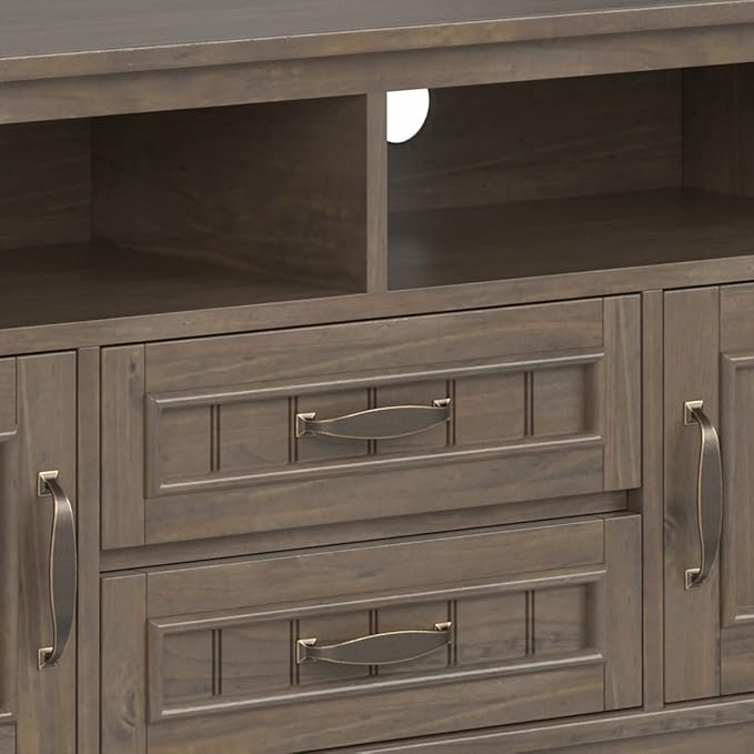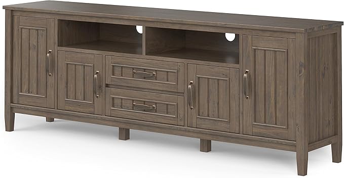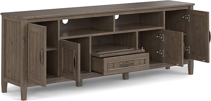 SIMPLIHOME Lev SOLID WOOD 72 Inch Wide Contemporary TV Media Stand in Smoky Brown for TVs up to 80 Inches, For the Living Room and Entertainment Center