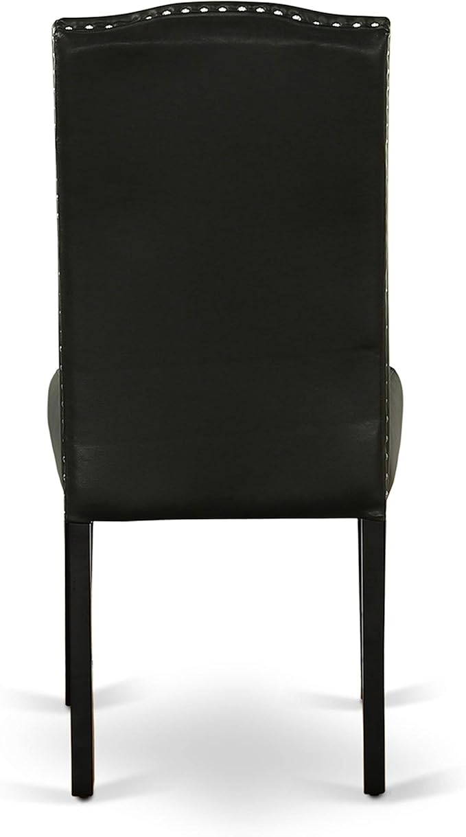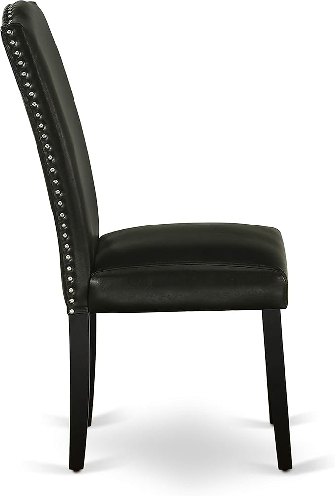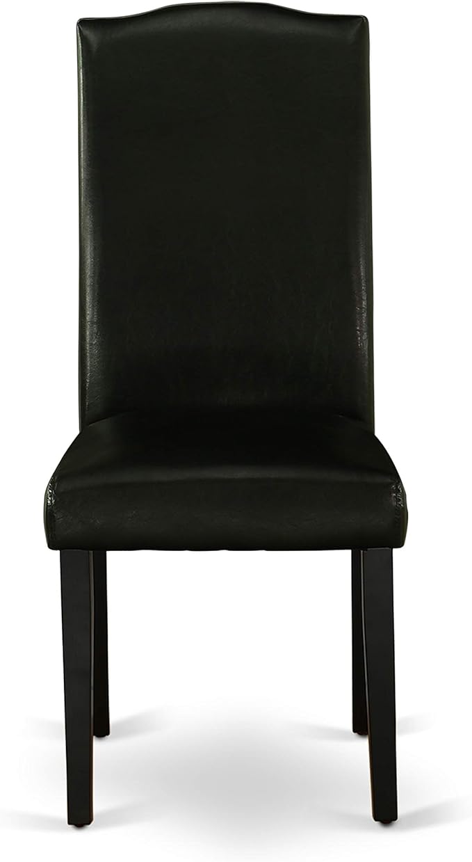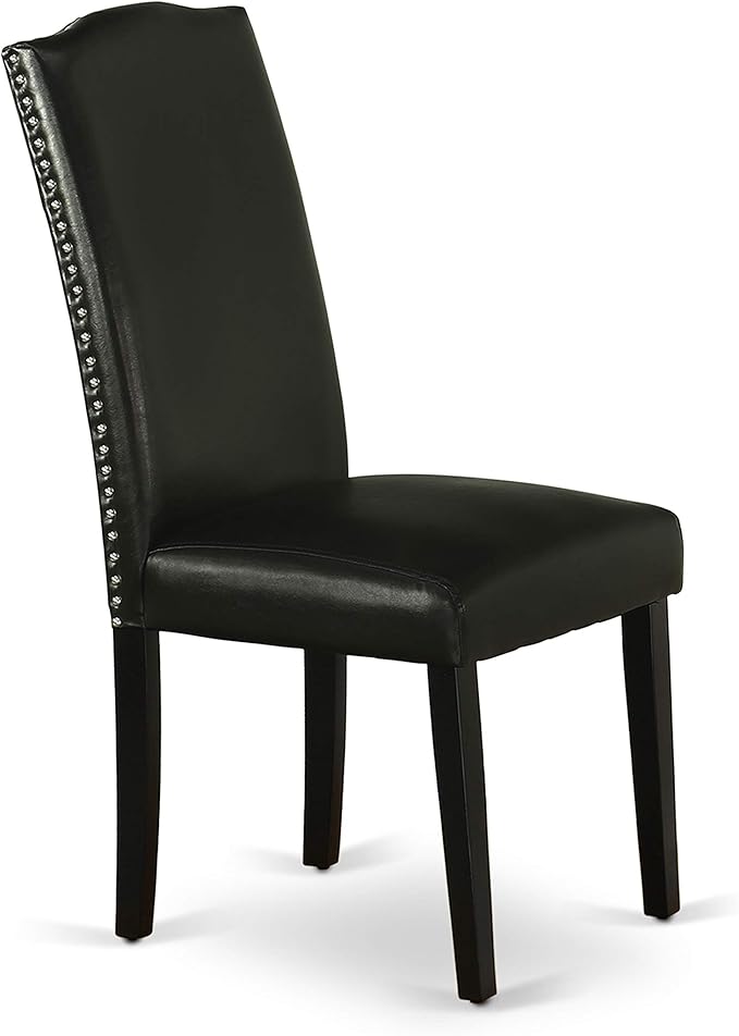 East West Furniture SHEN3-BLK-69 3 Piece Kitchen Table Set Contains a Round Dining Table with Pedestal and 2 Black Faux Leather Parson Dining Room Chairs, 42x42 Inch, Black