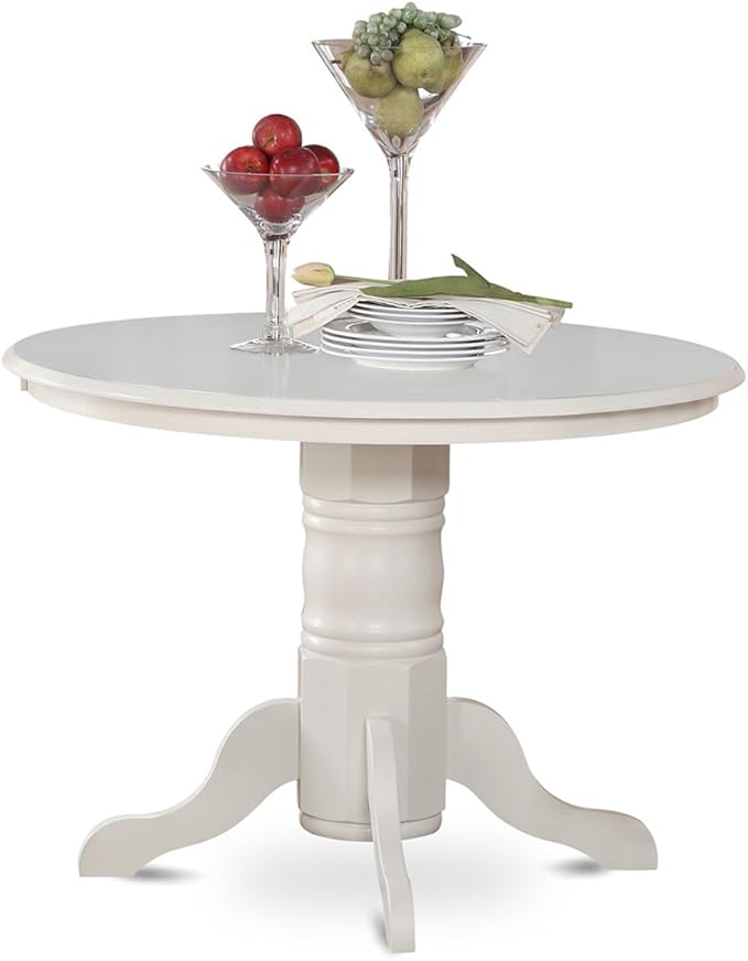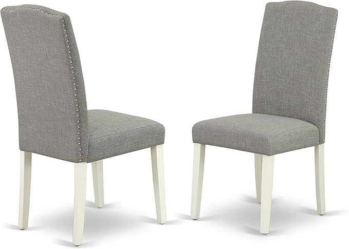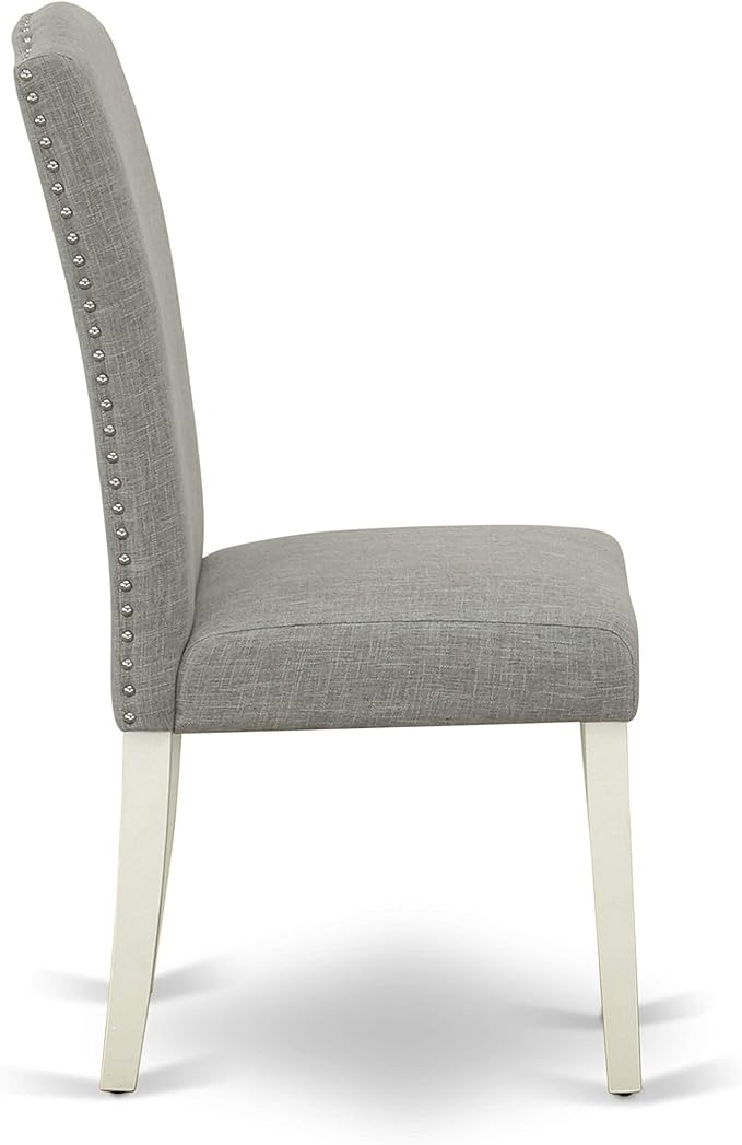 East West Furniture SHEN5-LWH-06 5 Piece Kitchen Set Includes a Round Dining Room Table with Pedestal and 4 Dark Shitake Linen Fabric Upholstered Chairs, 42x42 Inch