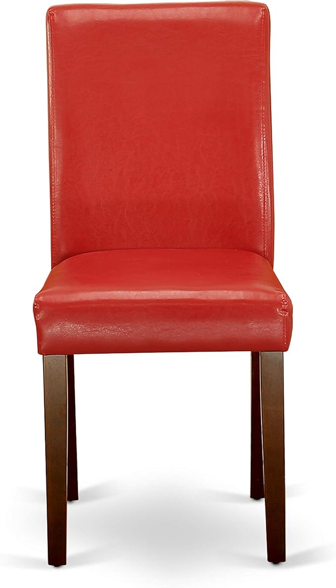 East West Furniture NOAB5-MAH-72 5 Piece Dining Room Table Set Includes a Rectangle Kitchen Table with Butterfly Leaf and 4 Firebrick Red Faux Leather Parson Chairs, 32x54 Inch, Mahogany