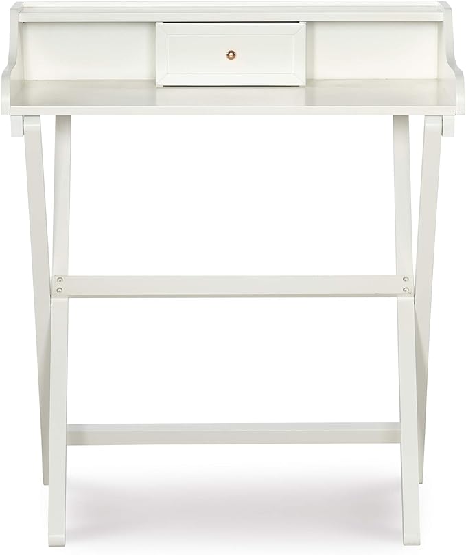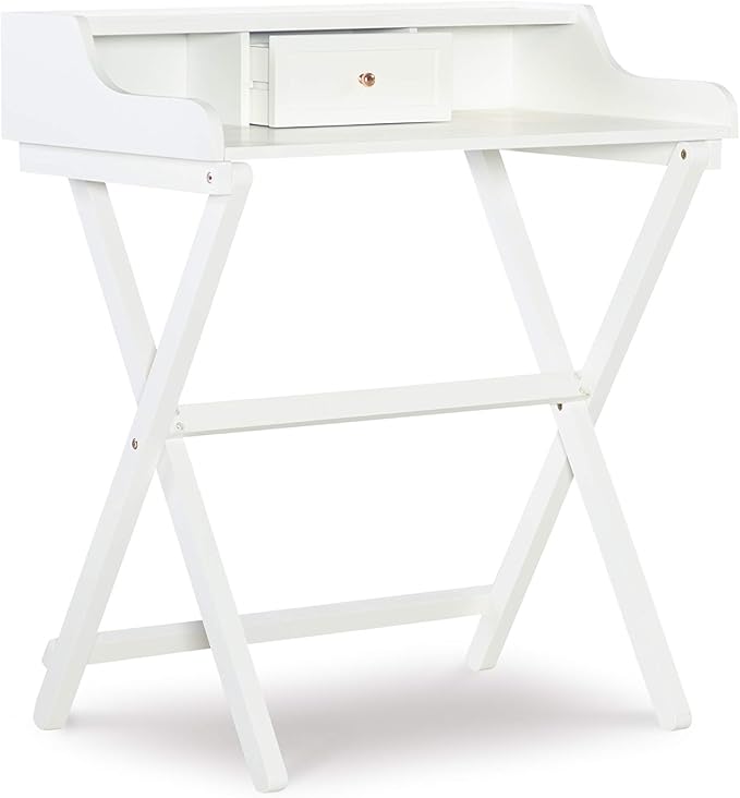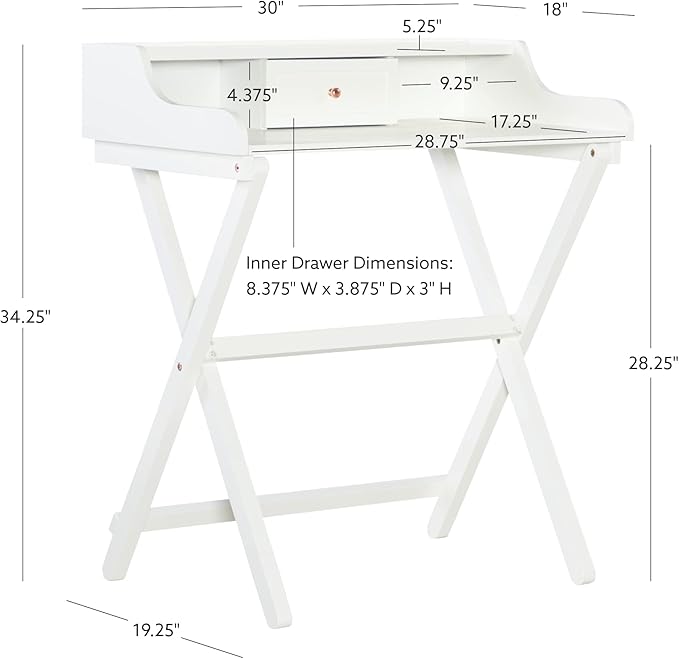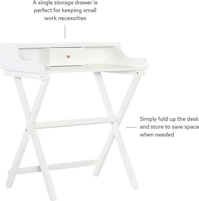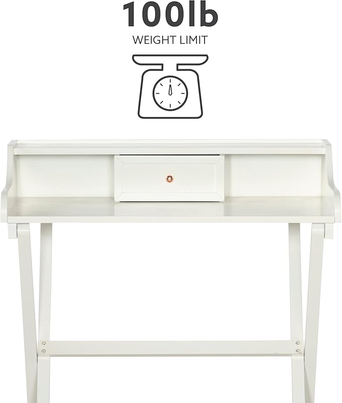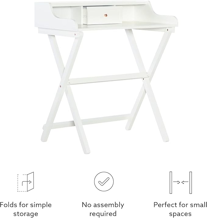 About This White Finish Folds for Simple storage Single storage drawer Spacious work area Floor to bottom of table: 28....