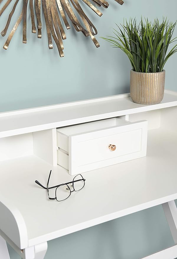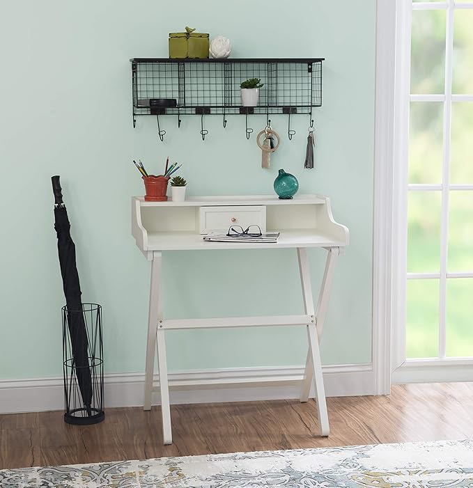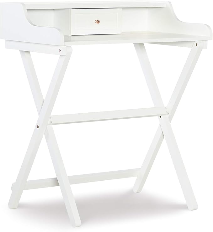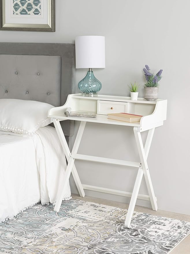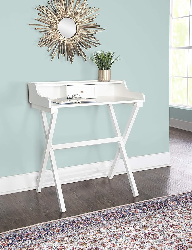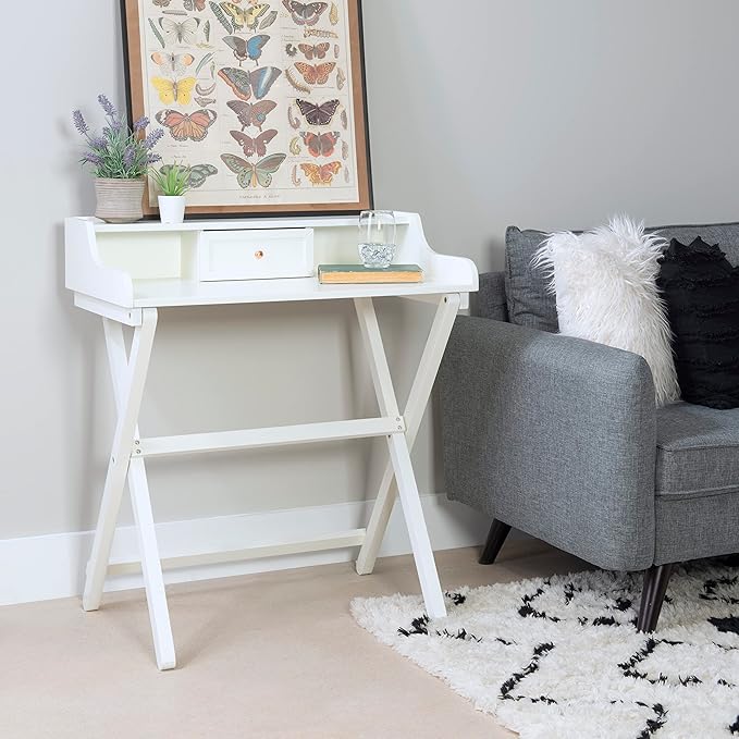About This White Finish Folds for Simple storage Single storage drawer Spacious work area Floor to bottom of table: 28....
