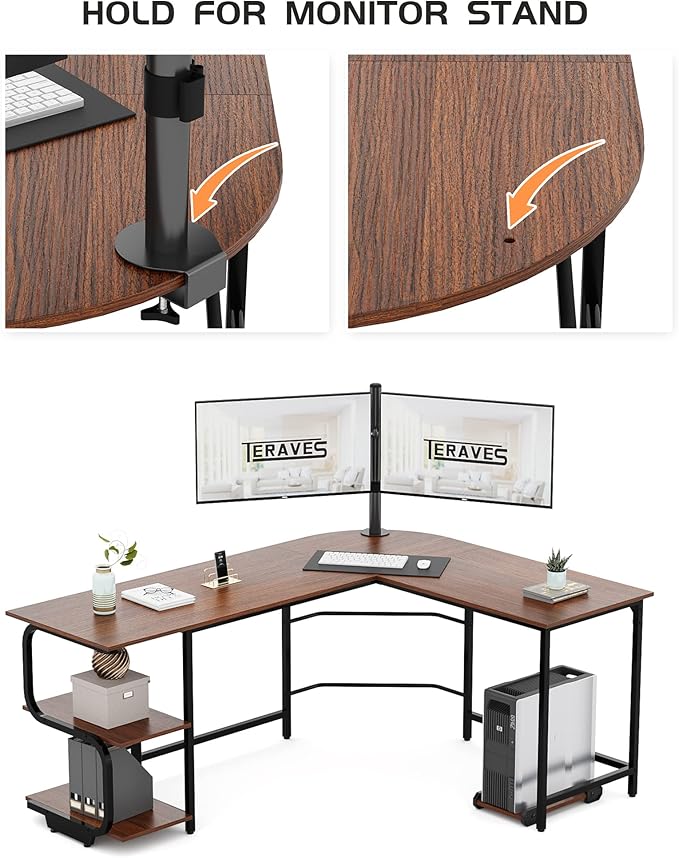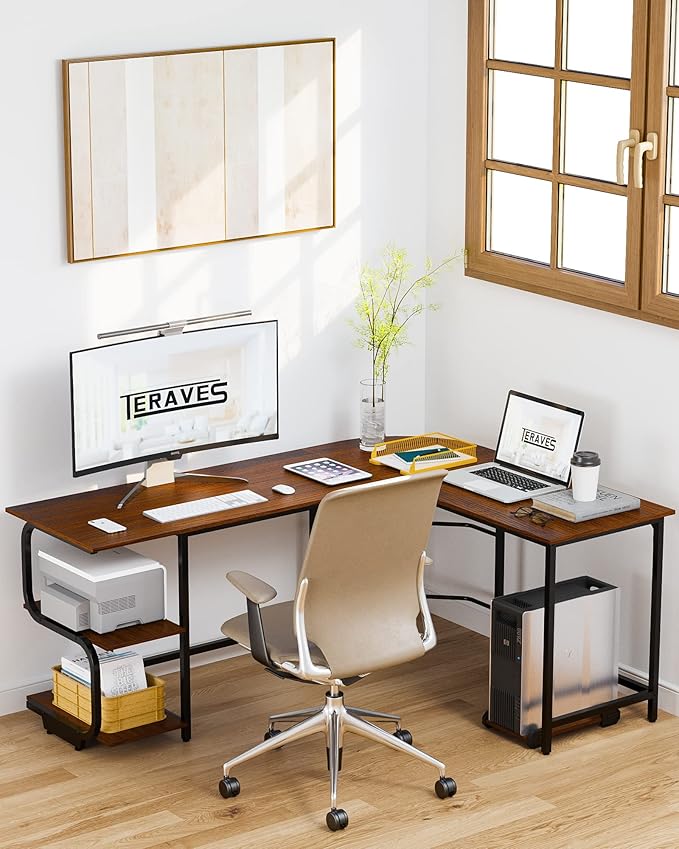 Teraves Reversible L Shaped Desk with Shelves 69“ Corner Computer Desk Gaming Desk Workstation for Home Office