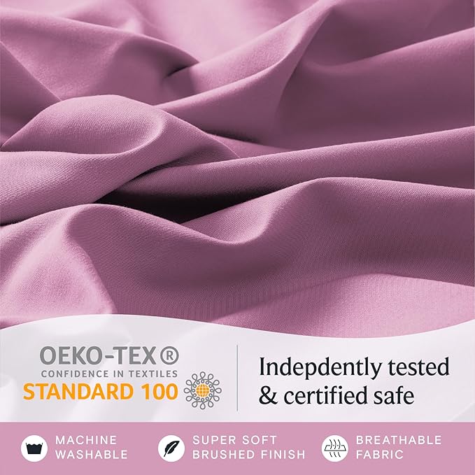 LuxClub 7 PC Split King Sheet Set, Breathable Luxury Bed Sheets, Deep Pockets 18" Eco Friendly Wrinkle Free Cooling Sheets Machine Washable Hotel Bedding Silky Soft - Light Plum Split King
