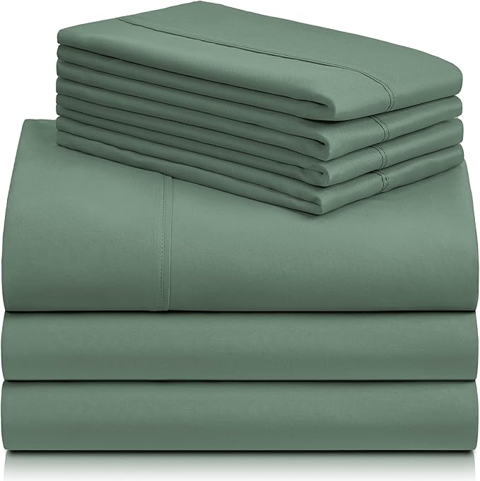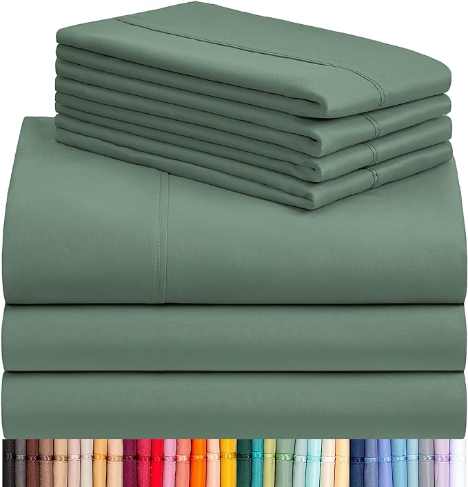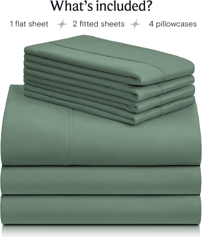 LuxClub 7 PC Split King Sheet Set, Breathable Luxury Bed Sheets, Deep Pockets 18" Eco Friendly Wrinkle Free Cooling Sheets Machine Washable Hotel Bedding Silky Soft - Tree Moss Green Split King