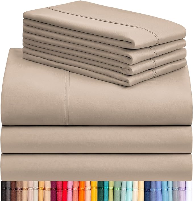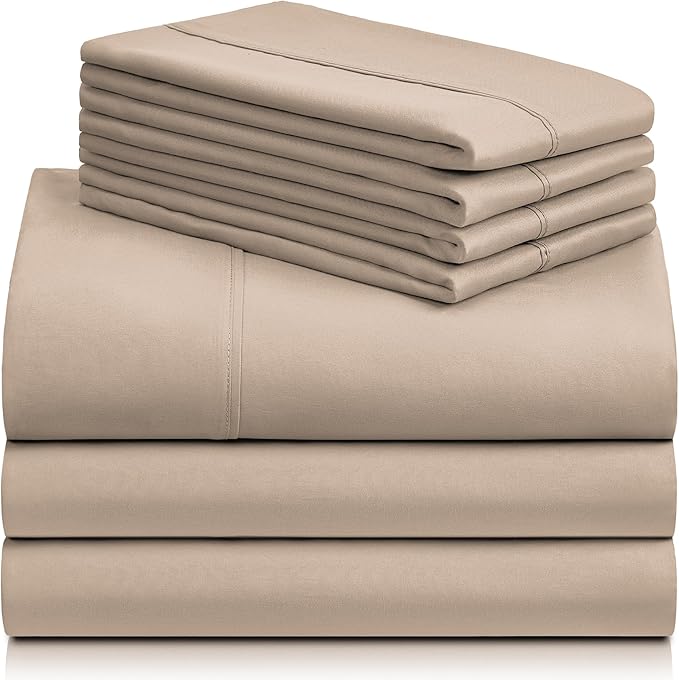 LuxClub 7 PC Split King Sheet Set, Breathable Luxury Bed Sheets, Deep Pockets 18" Eco Friendly Wrinkle Free Cooling Sheets Machine Washable Hotel Bedding Silky Soft - Light Khaki Split King