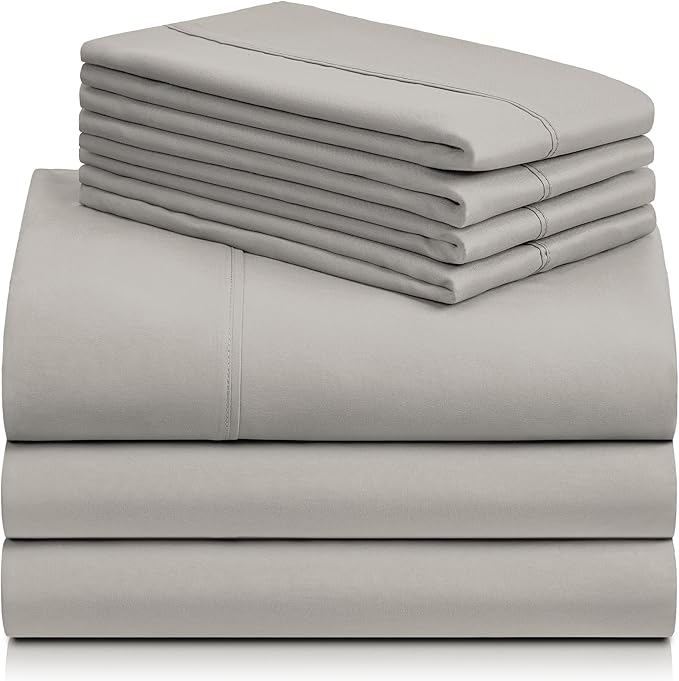 LuxClub 7 PC Split King Sheet Set, Breathable Luxury Bed Sheets, Deep Pockets 18" Eco Friendly Wrinkle Free Cooling Sheets Machine Washable Hotel Bedding Silky Soft - Light Taupe Split King