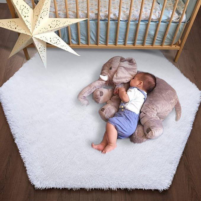 junovo Ultra Soft Rug for Nursery Children Room Baby Room Home Decor Dormitory Hexagon Carpet for Playhouse Princess Tent Kids Play Castle, Diameter 4.6 ft, White