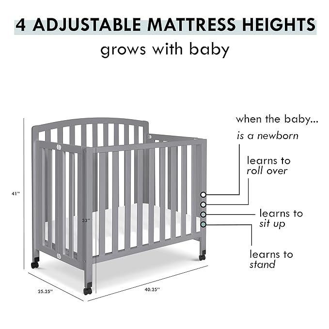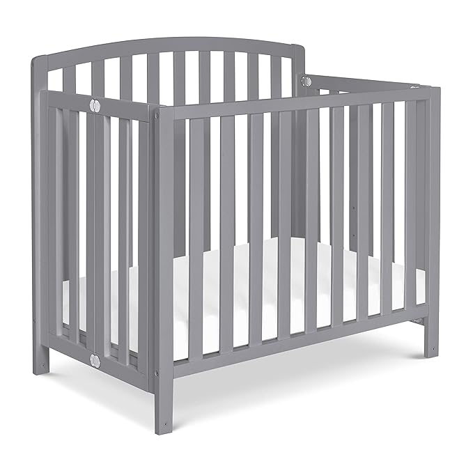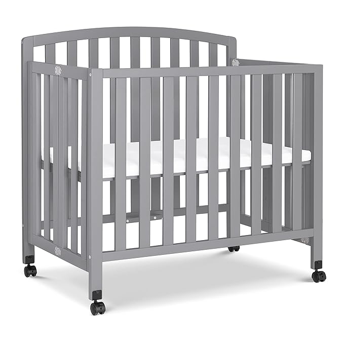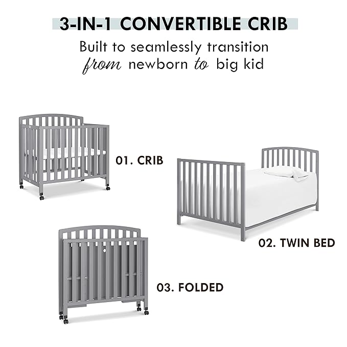 DaVinci Dylan Folding Portable 3-in-1 Convertible Mini Crib and Twin Bed in Grey, Greenguard Gold Certified