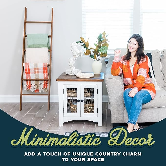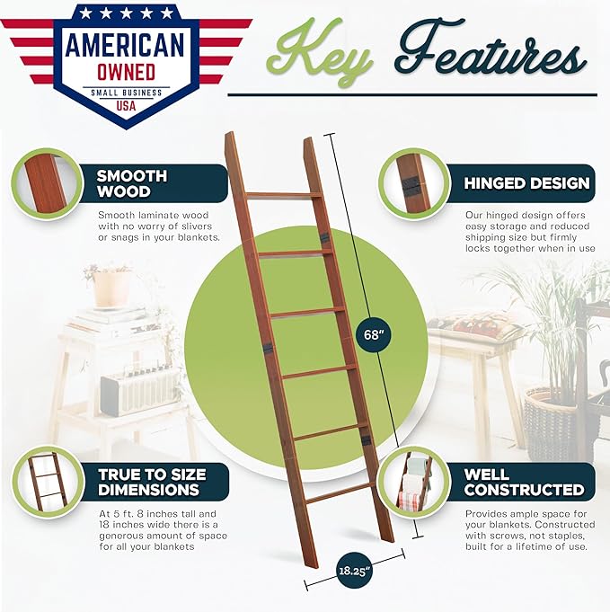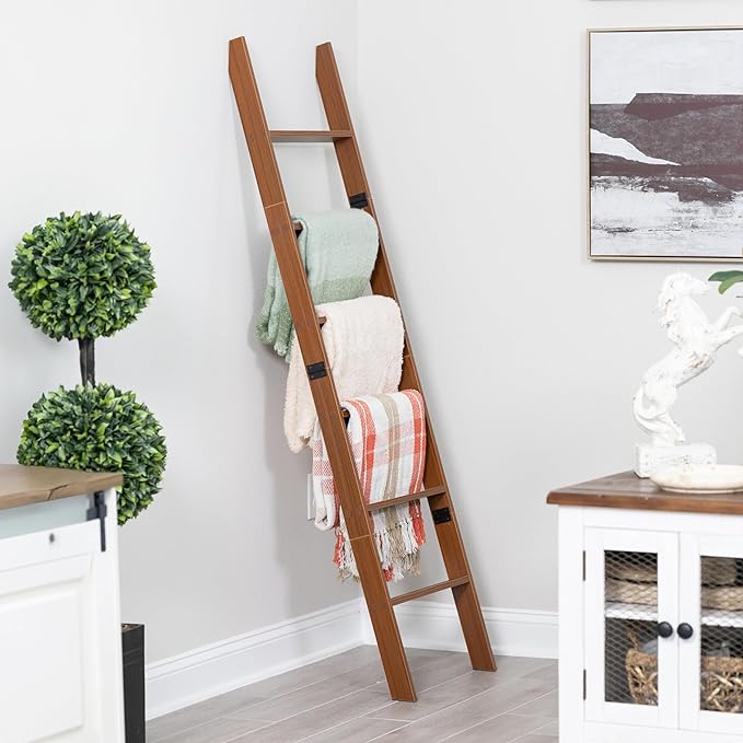 Blanket Ladder for Living Room and Bedroom, 6-Tier Wall Leaning Laminate Snag Free Construction (Brown) Rustic Decorative Farmhouse Blanket Storage, Quilt Rack, Ladder Shelf, Easy Assembly