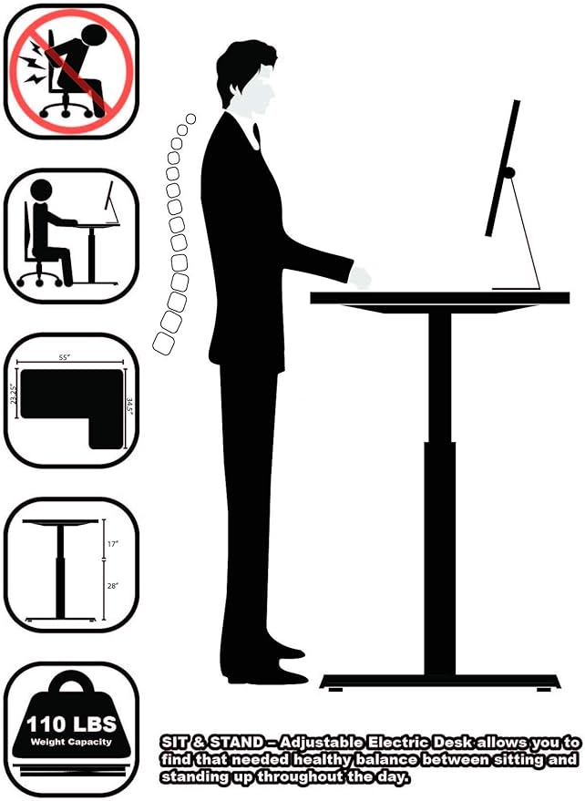 SHW 55-Inch Large Electric Height Adjustable L-Shaped Standing Desk with Right Facing Corner, Oak