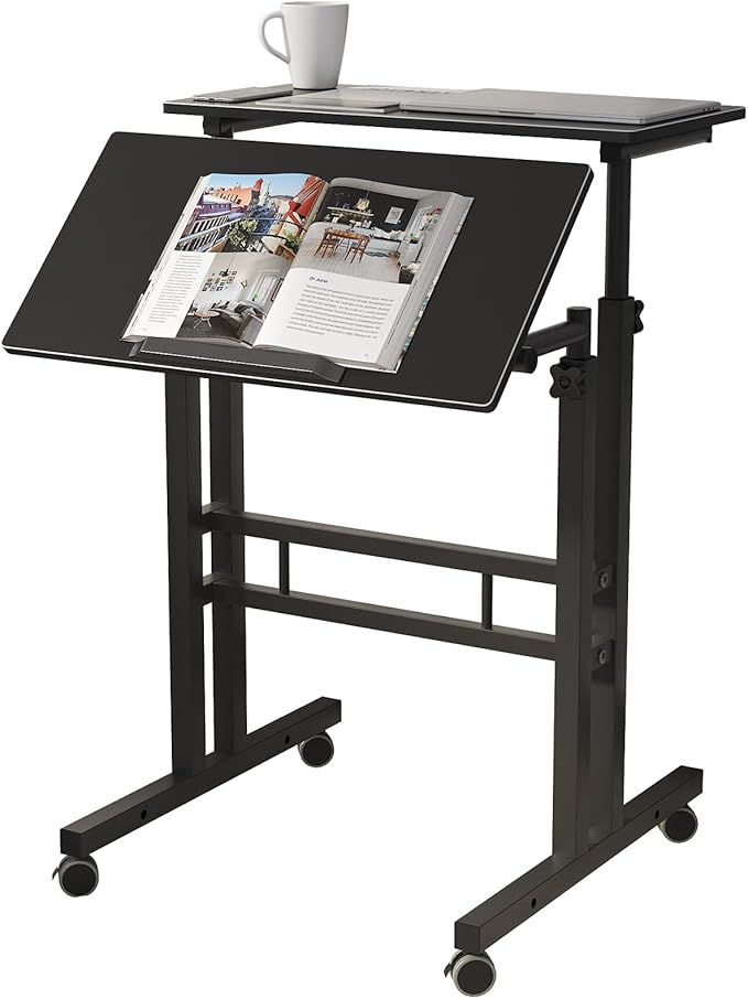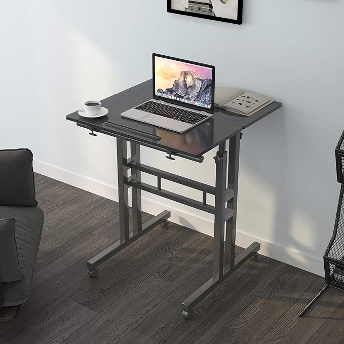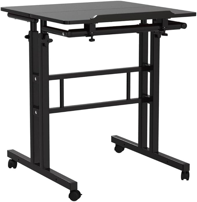 DlandHome Mobile Standing Desk Stand Up Desk Rolling Desk, Stand Sit Desk Mobile Computer Desk Adjustable Standing Desk 23.6inches Table Workstation Mobile Desk Cart Tray Black