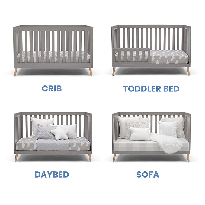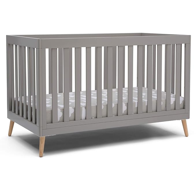 Delta Children Essex 4-in-1 Convertible Baby Crib, Grey with Natural Legs