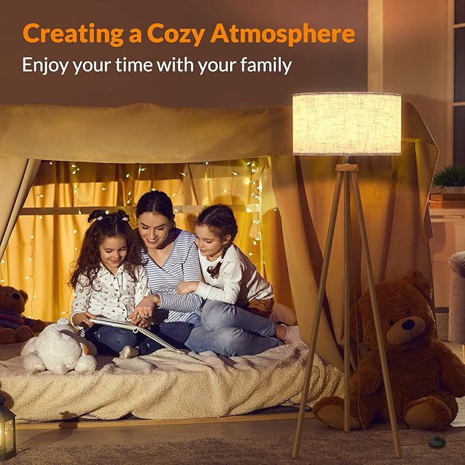 About This Stylish Design: Lepower wooden tripod floor lamp fits in modern architecture and decor. It has a unique stem...