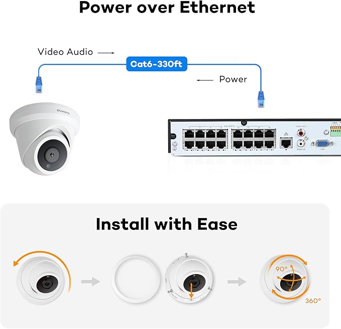 ONWOTE 6MP Super HD PoE IP Security Camera with Audio, AI Human Vehicle Detection, 3072x2048 6 Megapixels, 122° FoV, Indoor/Outdoor Commercial Wired Camera for Business, Add-on to PoE NVR System