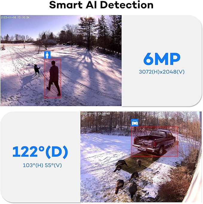 About This 6MP Superior Definition-- 6 million pixels, 122° diagonal field of view. Smart AI Human Vehicle Detection-- Reduce false...