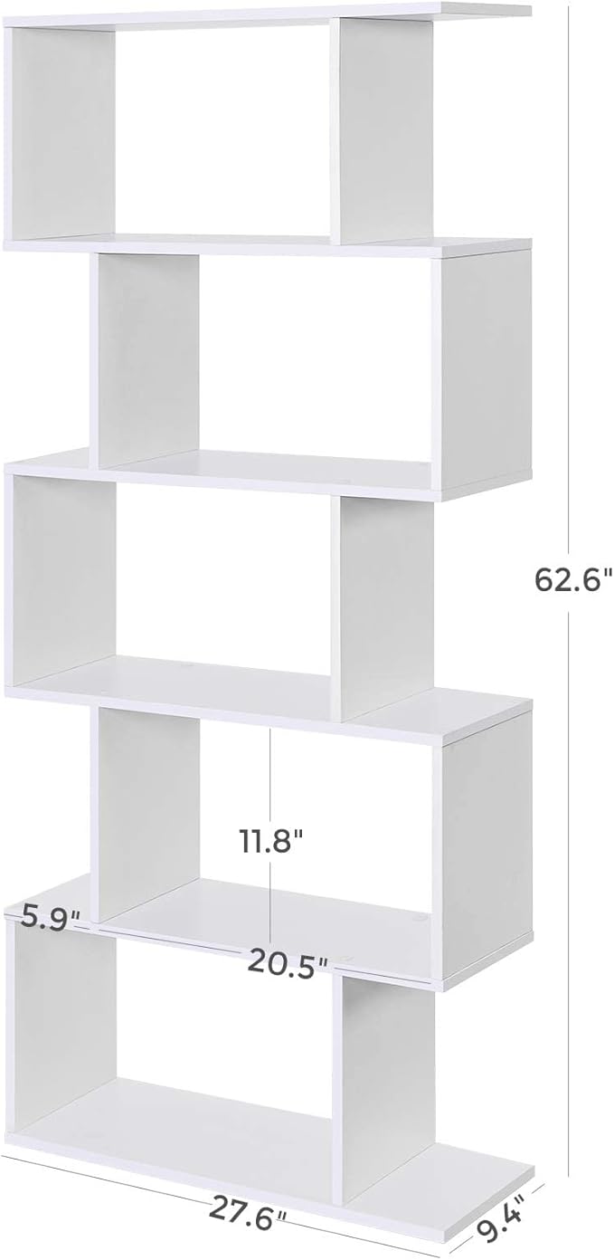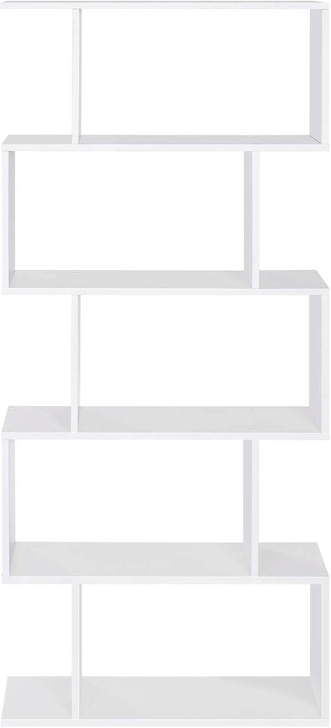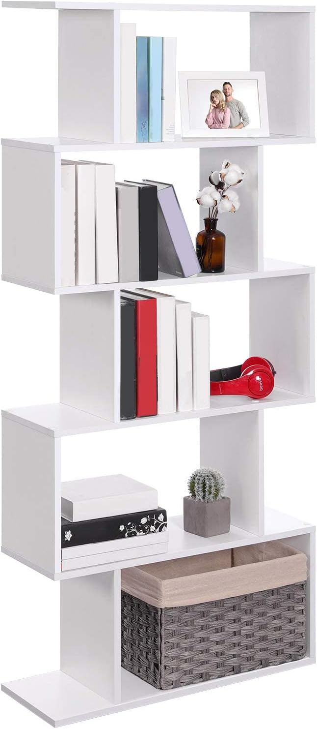 VASAGLE Wooden Bookcase, Display Shelf and Room Divider, Freestanding Decorative Storage Shelving, 5-Tier Bookshelf, White