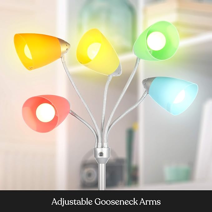 Brightech Medusa LED Floor Lamp – Multi-Head Dimmable Floor Lamp for Living Rooms & Offices – Tall Lamp with Interchangeable Shades, Adjustable Standing Lamp for Bedroom Reading – Silver