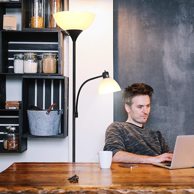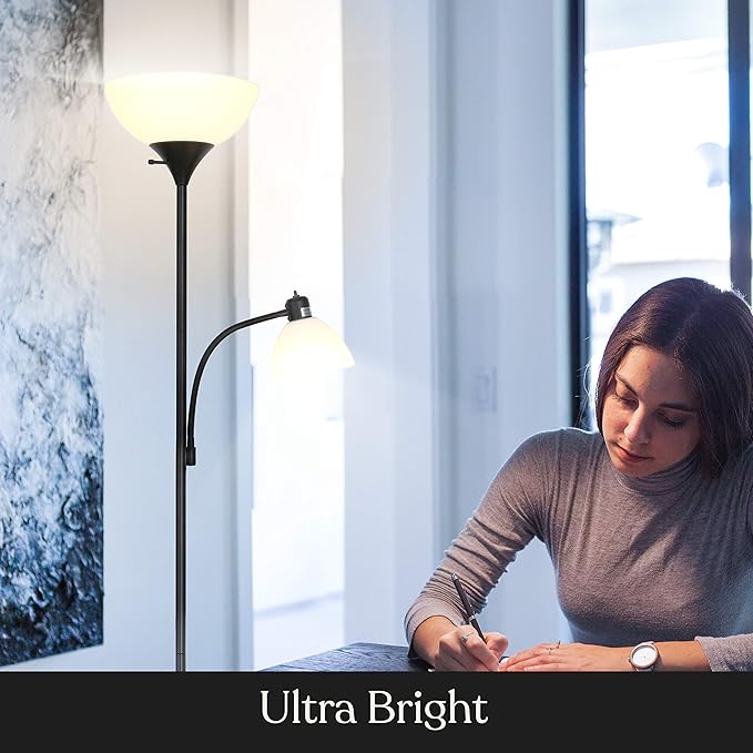 Brightech Sky Dome Plus LED Floor lamp, Torchiere Super Bright Floor Lamp with Reading Lamp for Living Rooms & Offices - Dimmable Tall Standing Lamp for Bedroom Reading - Black