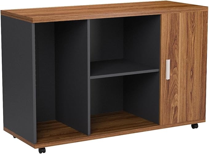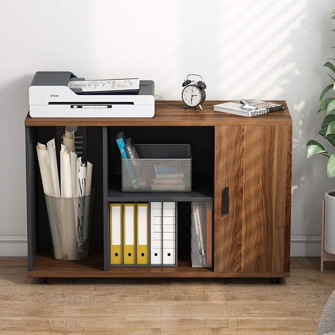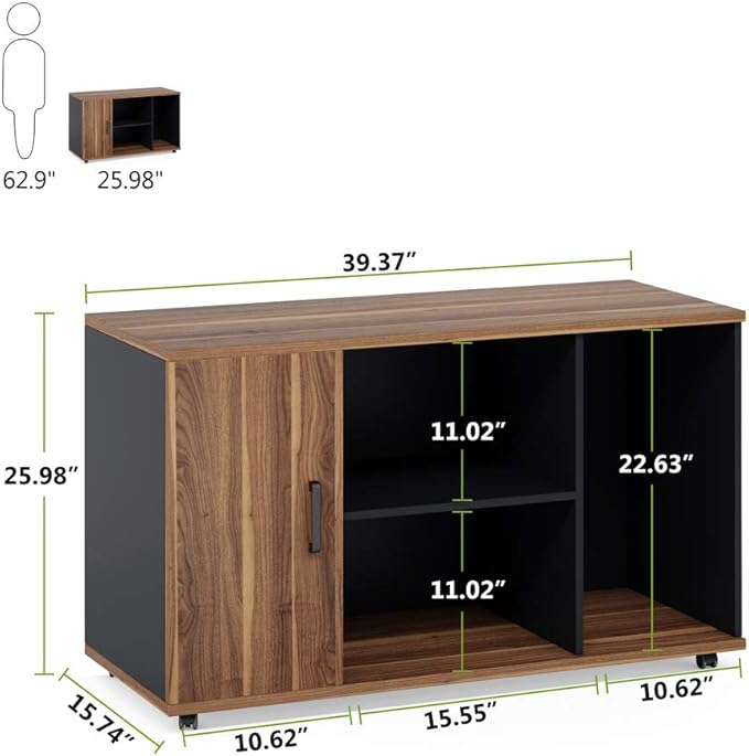 Tribesigns 39 inches File Cabinet, Large Storage Printer Stand, Mobile Filling Office Cabinet with Wheels, Doors and Open Storage Shelves,Dark Walnut