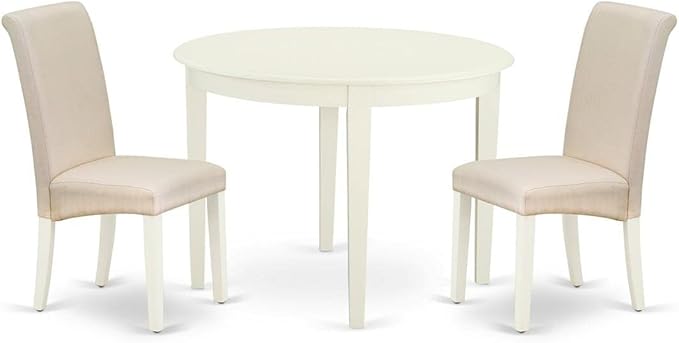East West Furniture BOBA3-WHI-01 Boston 3 Piece Kitchen Set Contains a Round Dining Room Table and 2 Cream Fabric Upholstered Parson Chairs, Linen White, 42x42 Inch