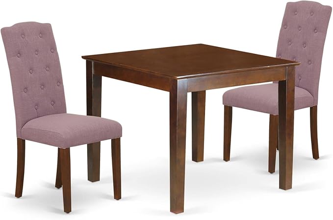 East West Furniture OXCE3-MAH-10 Oxford 3 Piece Kitchen Set for Small Spaces Contains a Square Dining Room Table and 2 Dahlia Linen Fabric Upholstered Chairs, 36x36 Inch