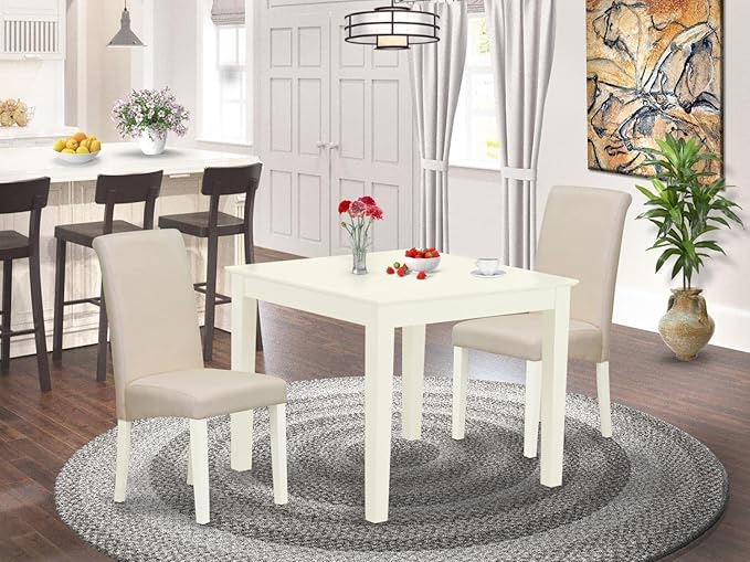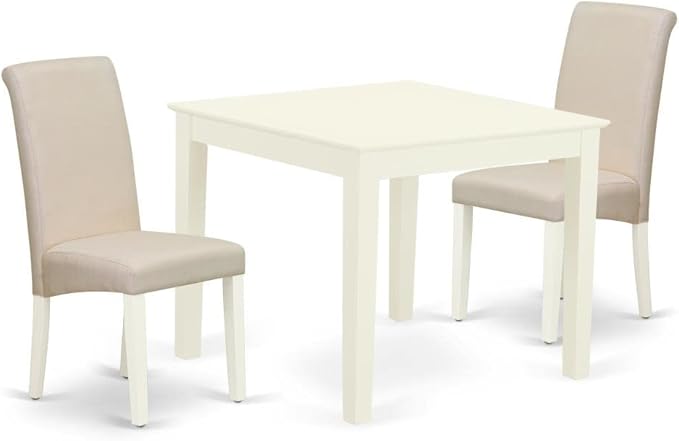 East West Furniture OXBA3-LWH-01 Oxford 3 Piece Kitchen Set for Small Spaces Contains a Square Dining Room Table and 2 Cream Linen Fabric Upholstered Chairs, 36x36 Inch