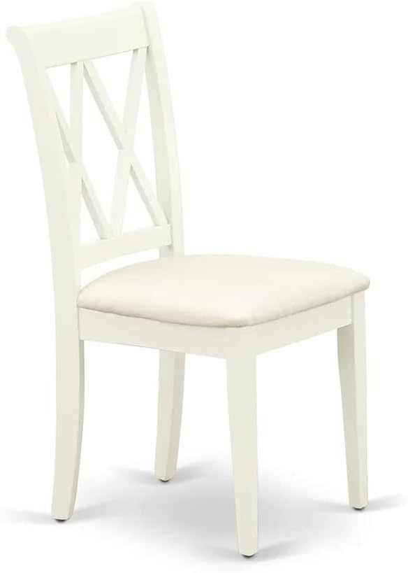 East West Furniture DLCL5-WHI-C Dublin 5 Piece Room Set Includes a Round Dining Table with Dropleaf and 4 Fabric Upholstered Chairs, 42x42 Inch, Linen White