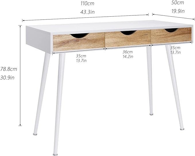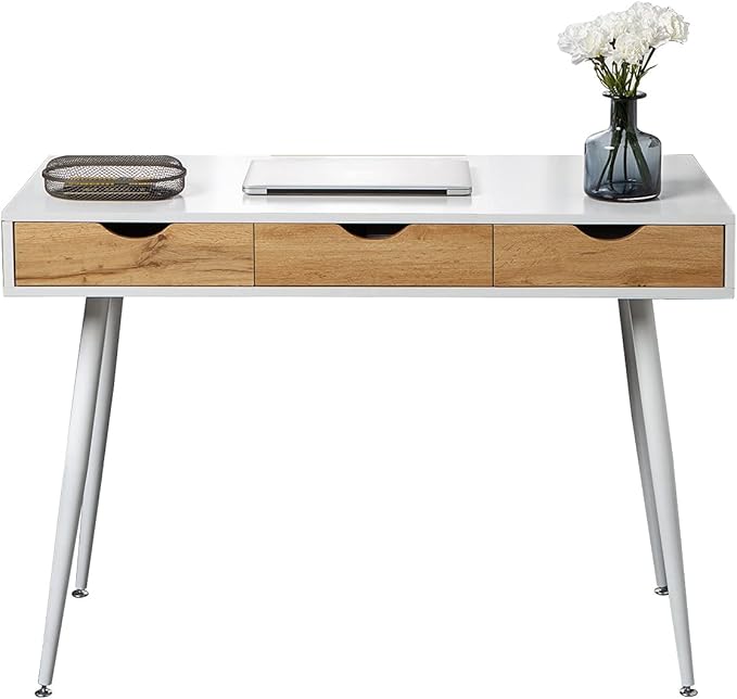 DlandHome Computer Desk with Drawers Mid Century Modern Desk 43 Inches Vanity Desk with 3-Drawers, Office Desk with Drawers Writing Desk Study Table Makeup Tables, Bedroom Dresser Table