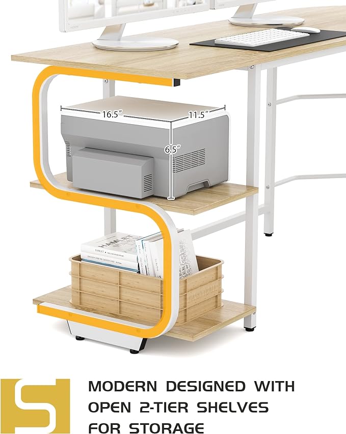 • Versatile Storage Space: This computer desk features an open 2-tier shelves for storing books or documents or for displaying decorative items. It also has enough space for your monitors, laptops or maybe other office supplies, makes everything you need accessible.