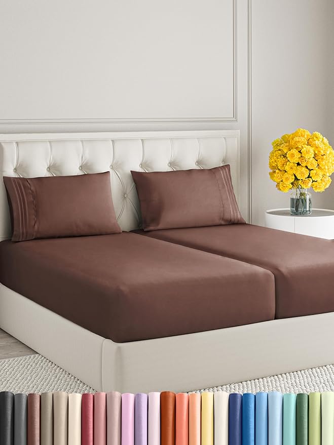 Split King Size 5 Piece Sheet Set - Comfy Breathable & Cooling Sheets - Hotel Luxury Bed Sheets for Women & Men - Deep Pockets, Easy-Fit, Soft & Wrinkle Free Sheets - Brown Oeko-Tex Bed Sheet Set