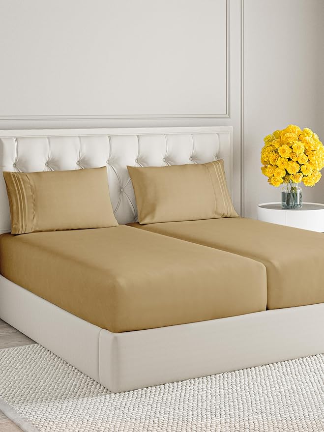 Split King Size 5 Piece Sheet Set - Comfy Breathable & Cooling Sheets - Hotel Luxury Bed Sheets for Women & Men - Deep Pockets, Easy-Fit, Soft & Wrinkle Free Sheets - Beige Oeko-Tex Bed Sheet Set
