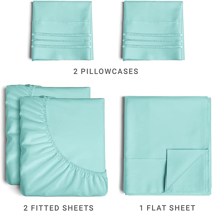 Split King Size 5 Piece Sheet Set - Comfy Breathable & Cooling Sheets - Hotel Luxury Bed Sheets for Women & Men - Deep Pockets, Easy-Fit, Soft & Wrinkle Free Sheets - Spa Blue Oeko-Tex Bed Sheet Set