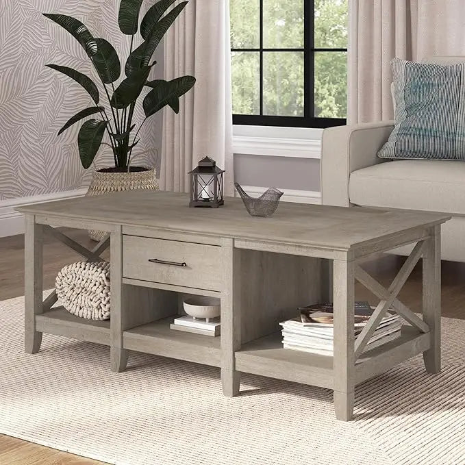Bush Furniture Key West Coffee Table with Storage in Washed Gray