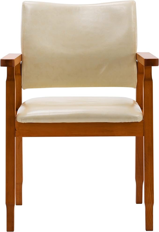 NOB Mid-Century Dining Side Chair with Faux Leather Seat in Beige, handrail Chair