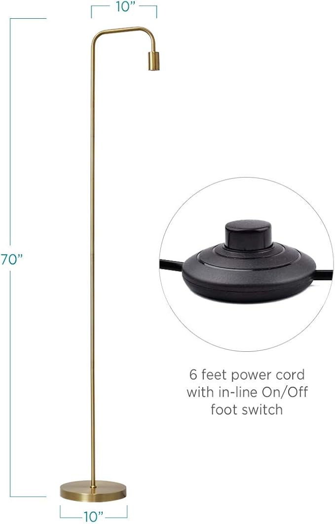 O’Bright Industrial Floor Lamp for Living Room, Metal Lamp, E26 Socket, 70 Inches, Minimalist Design for Decorative Lighting, Stand Lamp for Bedroom, Office, Dorm, Gold