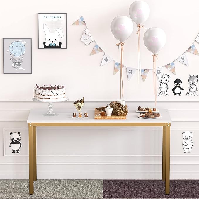Teraves Computer Desk/Dining Table Office Desk Sturdy Writing Workstation for Home Office(47.24”, White+Golden Frame)