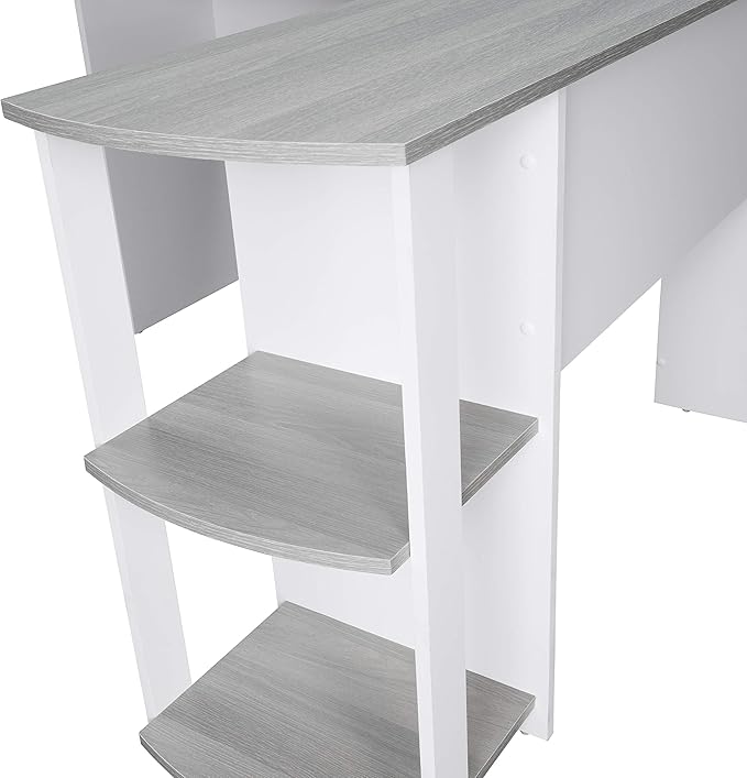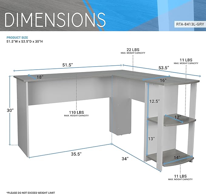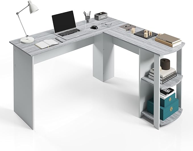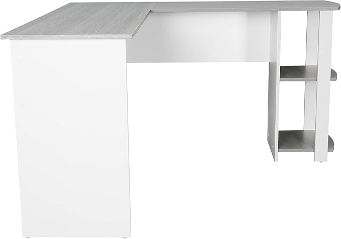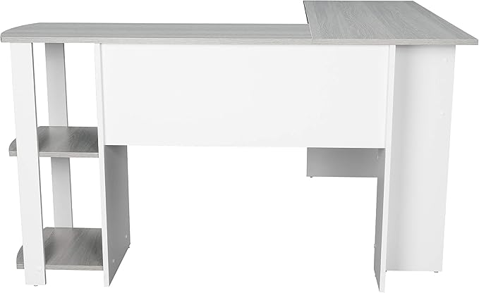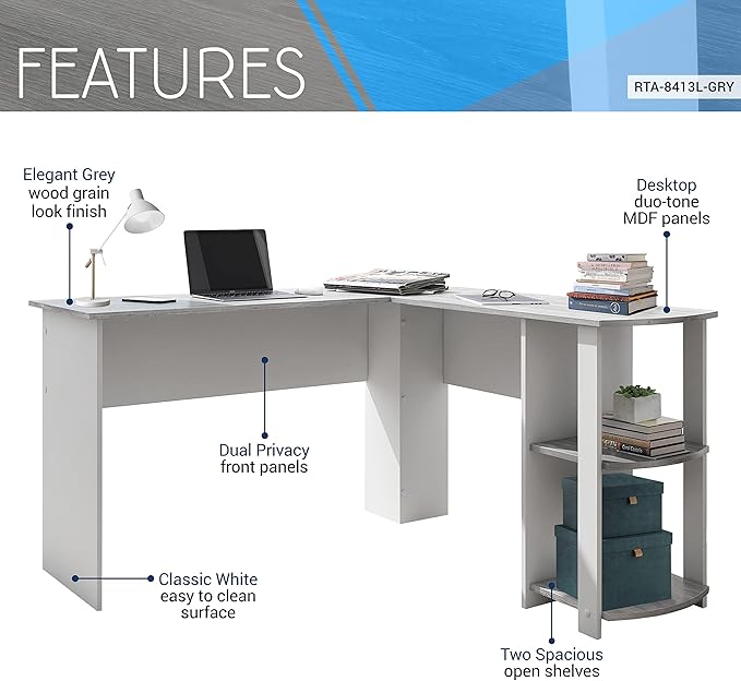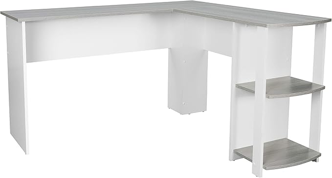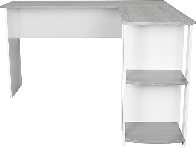 About This L-Shaped Computer desk made with wooden laminated panels Two storage shelves to keep office supplies within reach for...