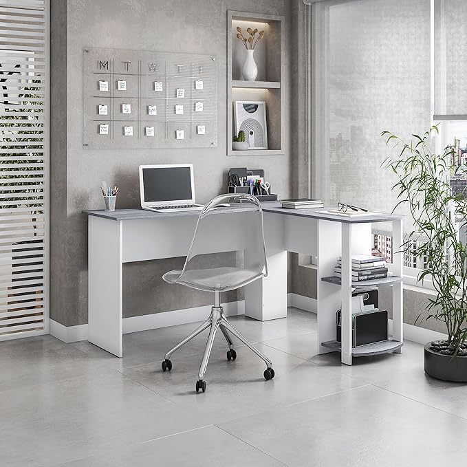 Techni Mobili L Shaped Desk - Modern Computer Desk with Corner Bookshelf & Side Storage Shelves for Home Office Accessories - Elegant, Space-Saving, & Minimalist Executive Table