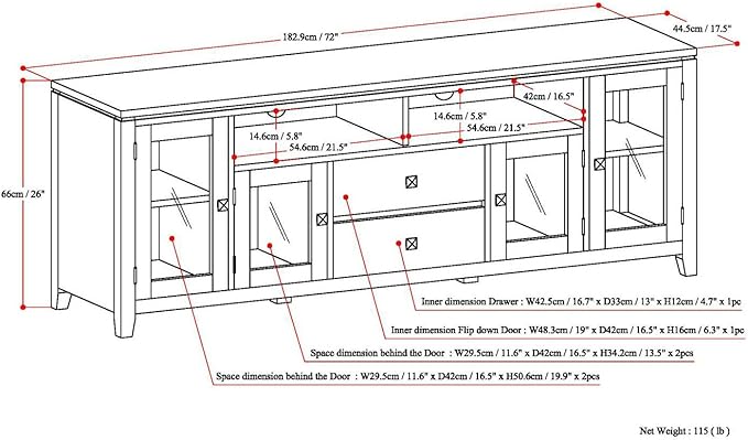 About This DIMENSIONS: 17.5" D x 72" W x 26" H SOLID WOOD: Handcrafted with care using the finest quality...