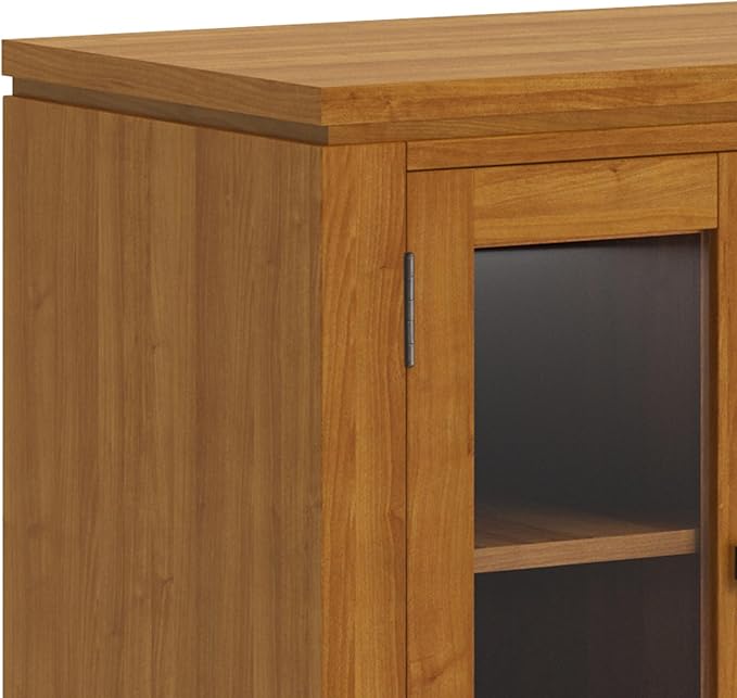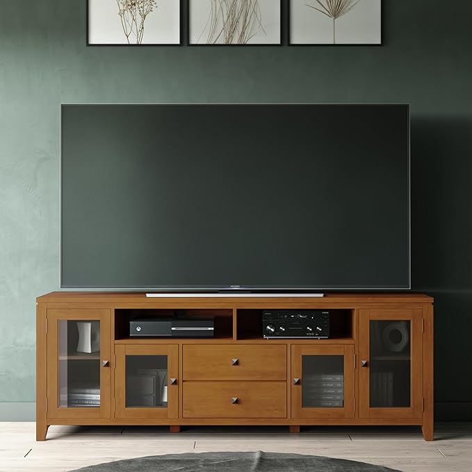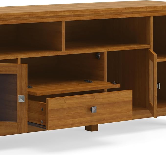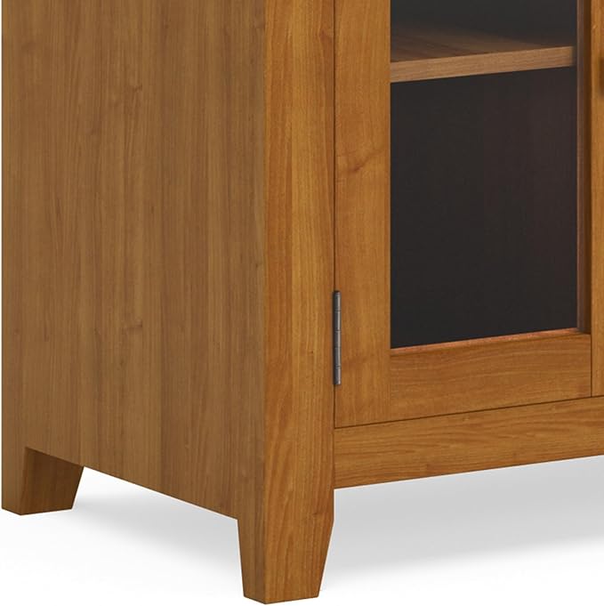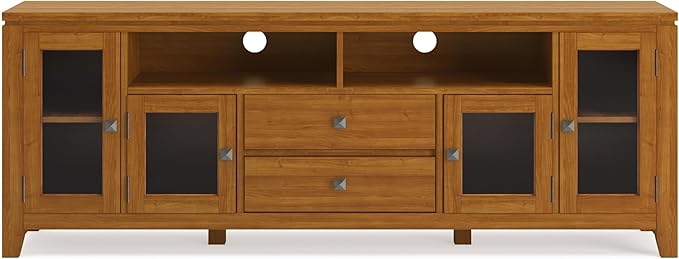 SIMPLIHOME Cosmopolitan SOLID WOOD 72 Inch Wide Contemporary TV Media Stand in Light Golden Brown for TVs up to 80 Inch, For the Living Room and Entertainment Center
