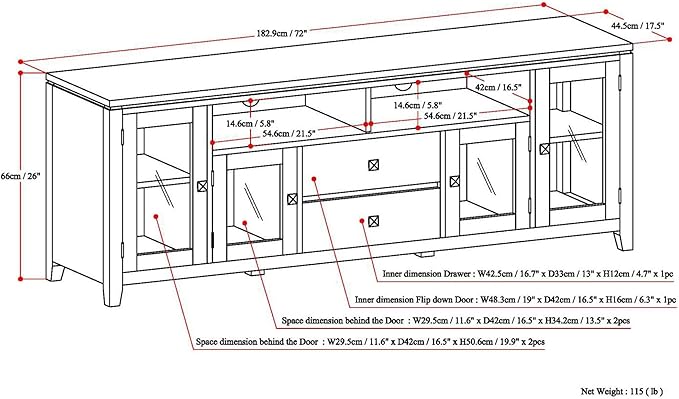 About This Solid Wood DIMENSIONS: 17.5" D x 72" W x 26" H SOLID WOOD: Handcrafted with care using the...